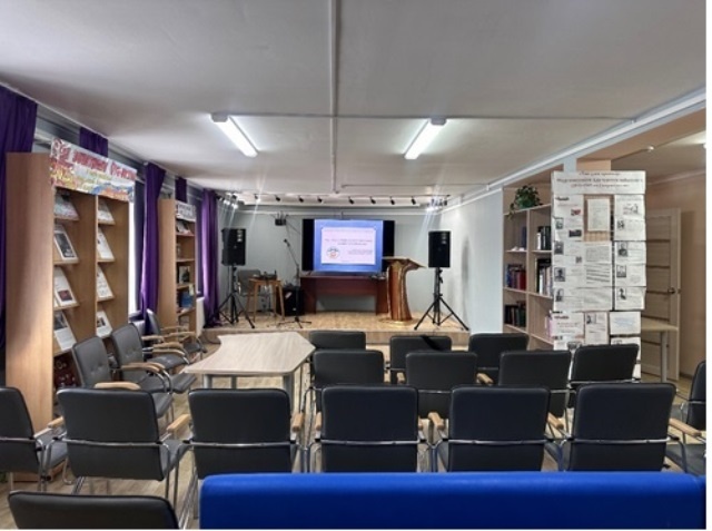 - - Многофункциональный зал – конференц-зал для крупных мероприятий, а также пространство для общения и организации выставок. Содержит информацию о сервисах и услугах библиотеки, справочный книжный фонд.