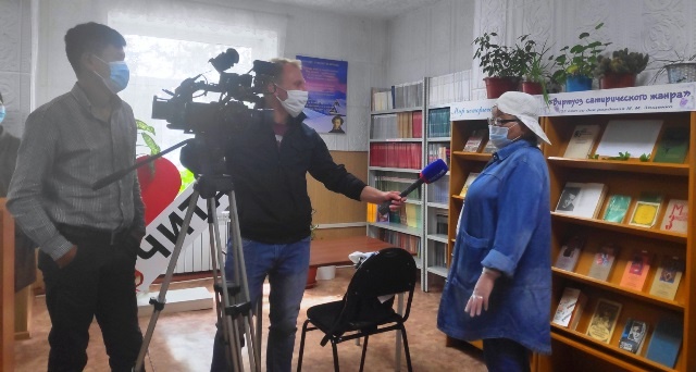 Первые читатели библиотеки посетили отдел абонемента. Они с удовольствием дали интервью ГТРК "Тыва", которая приехала снять сюжет о возобновлении работы библиотеки после отмены режима самоизоляции в связи с пандемией.