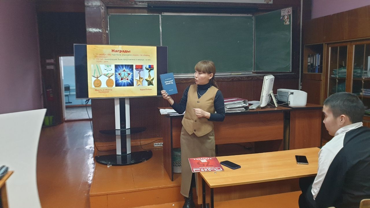 Сегодня, 27 января, в День полного освобождения Ленинграда от фашистской блокады, в рамках Всероссийской акции памяти «Блокадный хлеб» в Кызылском транспортном техникуме и Кызылском техникуме экономики и права потребительской кооперации для студентов сотрудник Национальной библиотеки провела акцию памяти «Блокадный хлеб».