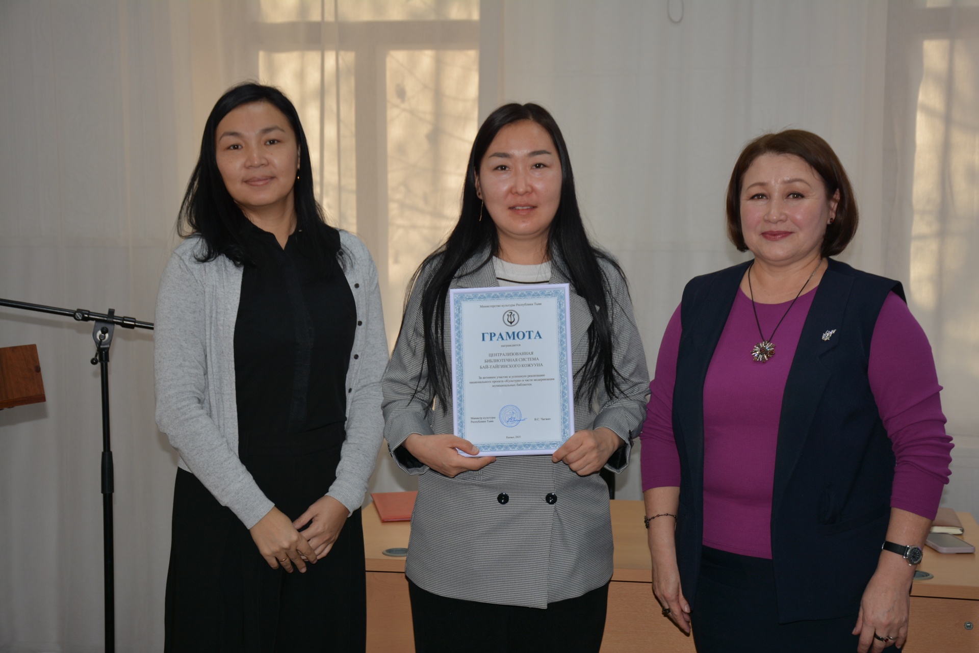 За активное участие и успешную реализацию национального проекта «Культура» в части модернизации муниципальных библиотек наградили Централизованные библиотечные системы Барун-Хемчикского, Кызылского, Чеди-Хольского, Бай-Тайгинского районов.