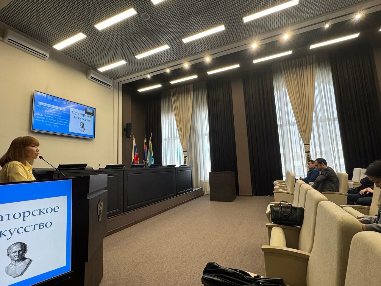 В ходе второй лекции слушатели узнали о видах ораторского искусства, в частности о судебном ораторском искусстве и об эффективных практиках применения компьютерной презентации при публичных выступлениях.