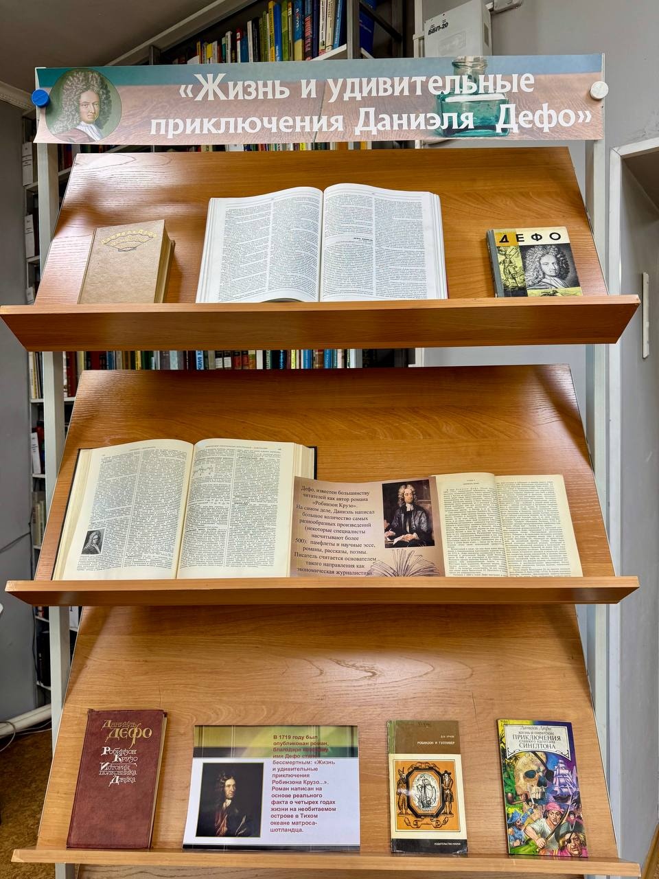 Даниэль Дефо – знаменитый английский писатель. Он – автор более 560 произведений самых разных жанров: романов, очерков, политических памфлетов, поучительных диалогов. Удивительную жизнь прожил этот человек! Дефо считают одним из первых сторонников романа как жанра. Он помог популяризовать этот жанр в Великобритании. Некоторые считают его одним из основателей английского романа. Главное – Даниэль Дефо подарил человечеству увлекательный роман о Робинзоне Крузо, по мотивам которого написаны десятки романов и повестей, сняты фильмы и сериалы. Более 3 веков путешествует по свету замечательная книга Дефо, и нет на свете уголка, где она не была бы известна и любима.Посетители выставки узнают об интересных страницах биографии самого автора и об истории создания самого известного его произведения, о шотландском моряке Александре Селькирке, ставшем прототипом Робинзона Крузо.