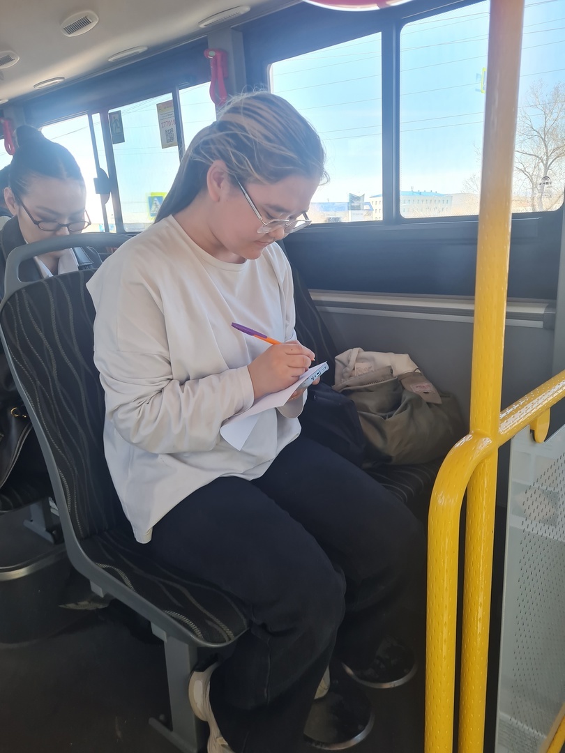 Пассажиры 104-го маршрута все вместе поют военные песни, читают стихи о войне и отрывки из произведений военных лет. Пишут письма сражающимся на СВО землякам и складывают их в треугольники. Участвуют в викторине о войне и получают ценные призы и георгиевские ленты от сотрудников библиотеки.