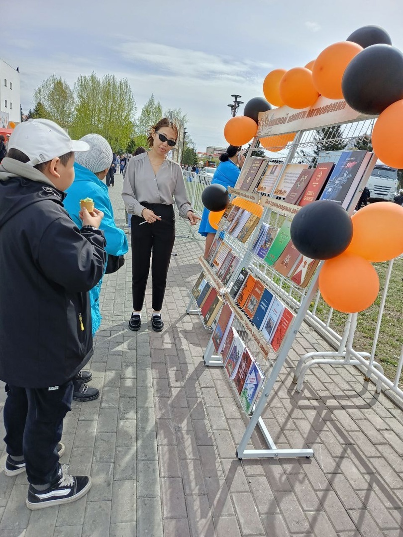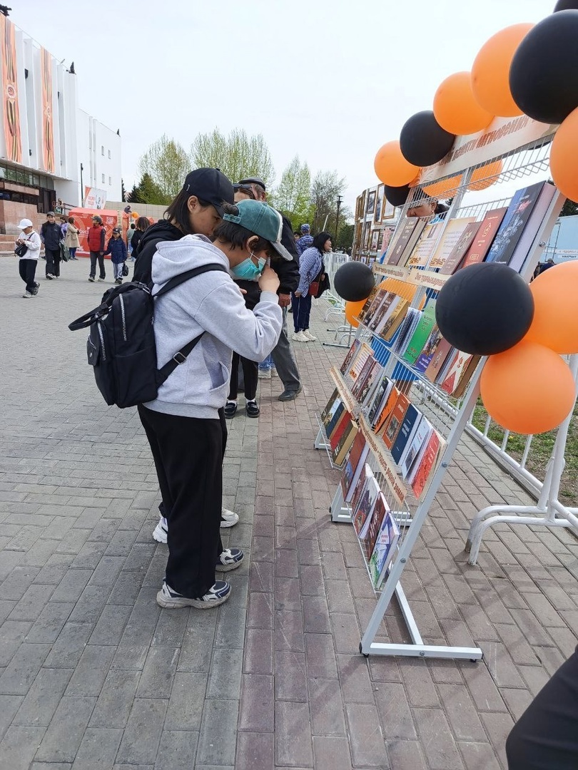 Сотрудники Национальной библиотеки Тувы на площади Арата г. Кызыла оформили трогательную и значимую экспозиция – книжную выставку "В книжной памяти мгновения ВОв", посвященную 80-летию Великой Победы.