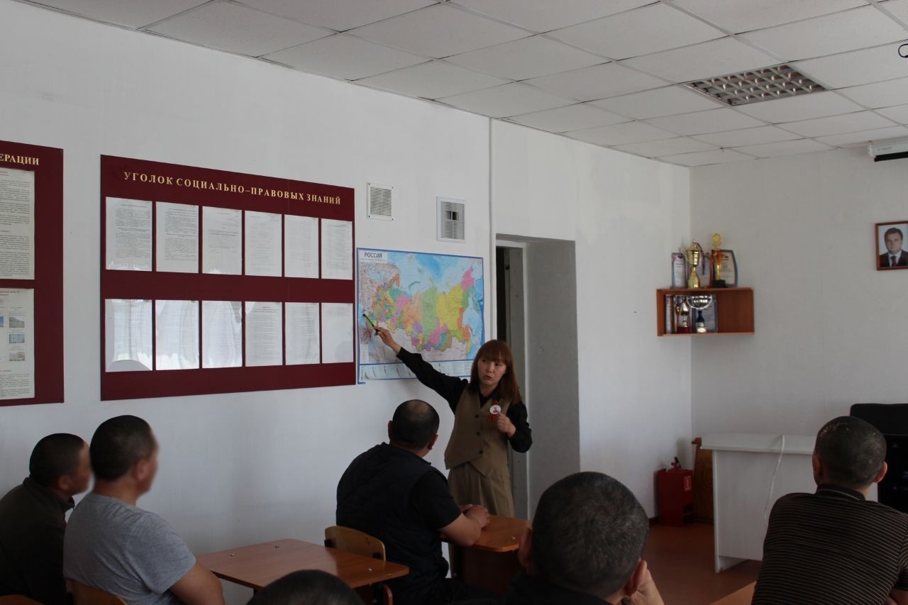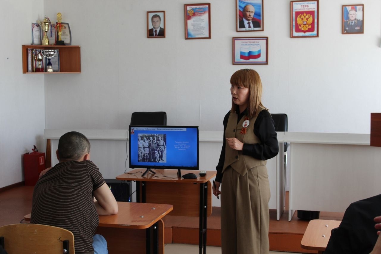 На кануне Дня Победы для осужденных КП-3 УФСИН России по РТ состоялся патриотический час, который начался с исторической географии крупных битв Великой Отечественной войны. Вспомнили о битвах за Москву, Сталинград, Кавказ и др. Вражеские войска двигались в нескольких направлениях приближаясь к границам Советского союза.