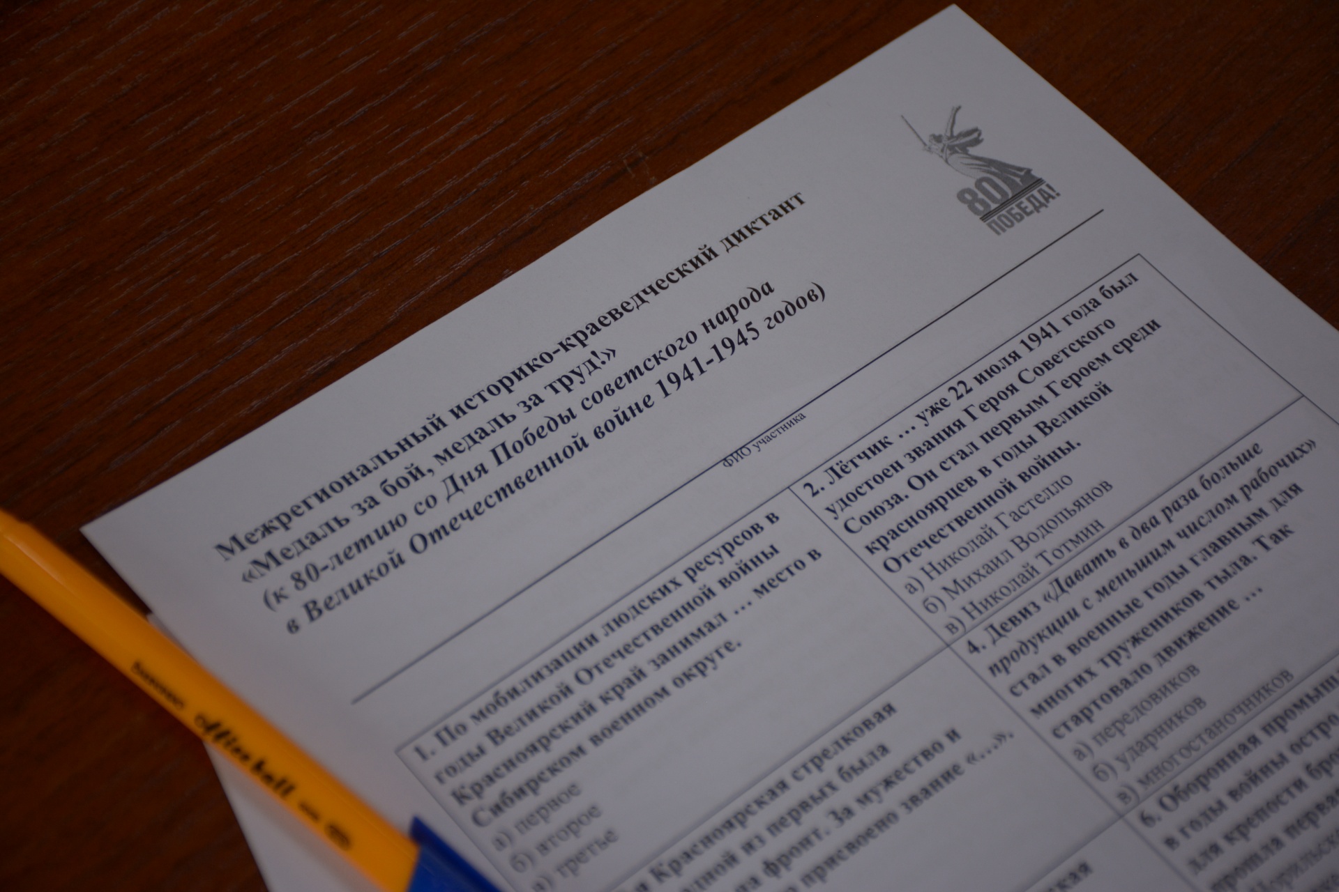 Диктант содержал 20 вопросов, символично, что максимальная сумма баллов за правильные ответы – 80. Победители будут награждены именными дипломами. Остальные получат именной сертификат участника. Общие результаты и имена победителей опубликуют до 30 мая на сайте Красноярской краевой молодёжной библиотеки тут.