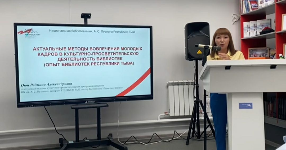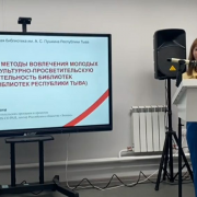 На сессии «Библиотекари поколения зумеров. Траектории карьеры и личностного развития в библиотеке» выступила Радмила Оюн с докладом «Актуальные методы вовлечения молодых кадров в культурно-просветительскую деятельность библиотек (опыт библиотек Тувы)». Она рассказала о методах, о статистике молодых специалистов и их вовлечения в работу библиотек, а также представила анализ.