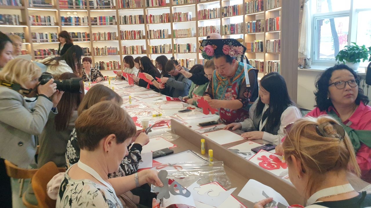 Российско-китайский молодежный библиотечный конвент продолжил работу в Китае, где специалисты республиканских библиотек Радмила Оюн и Сылдысмаа Лопсан, а также представители библиотечного сообщества из 34 субъектов России посетили библиотеку района Айгунь в городе Хэйхэ.