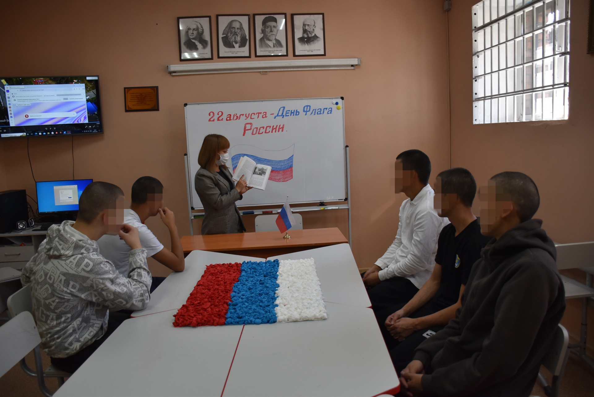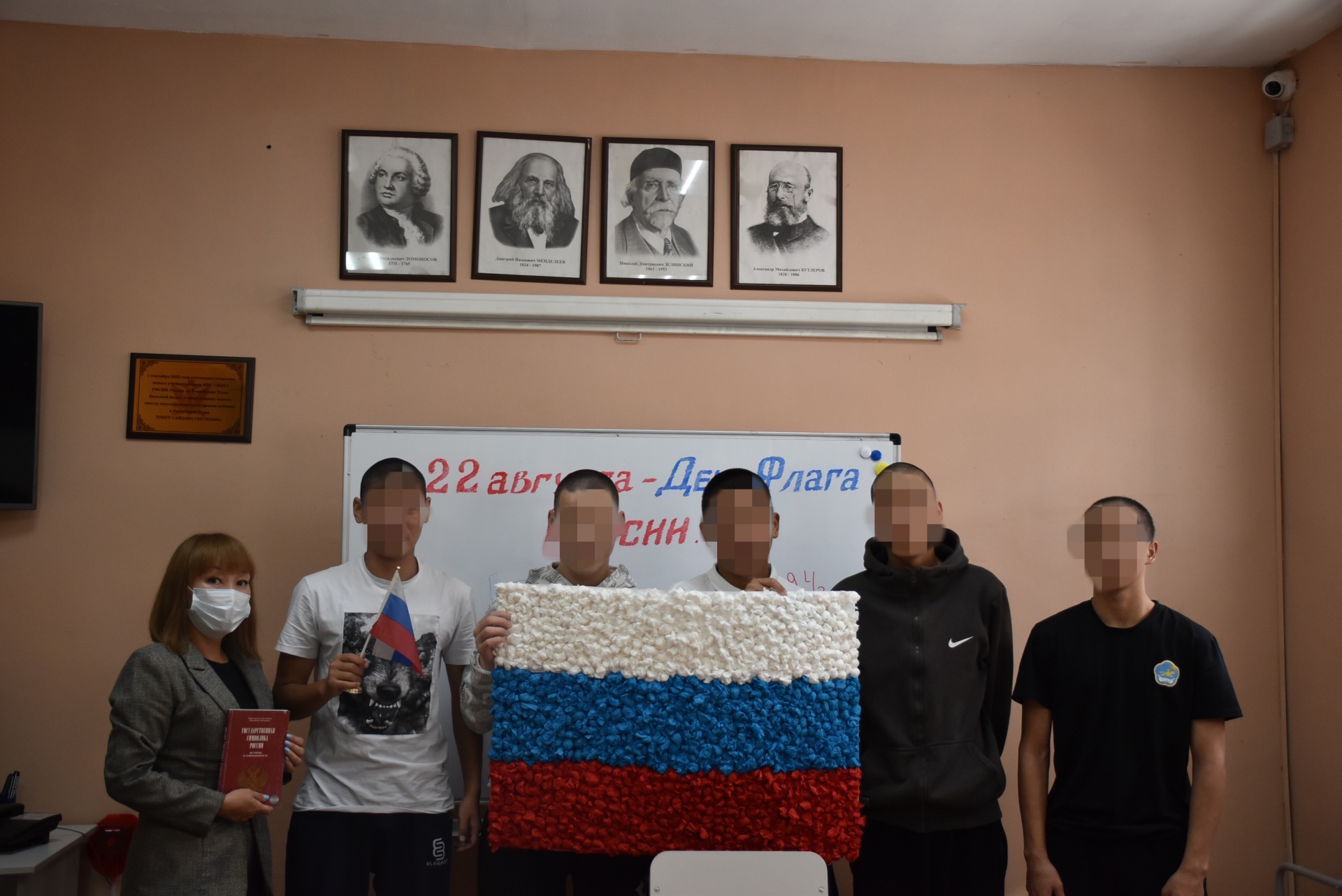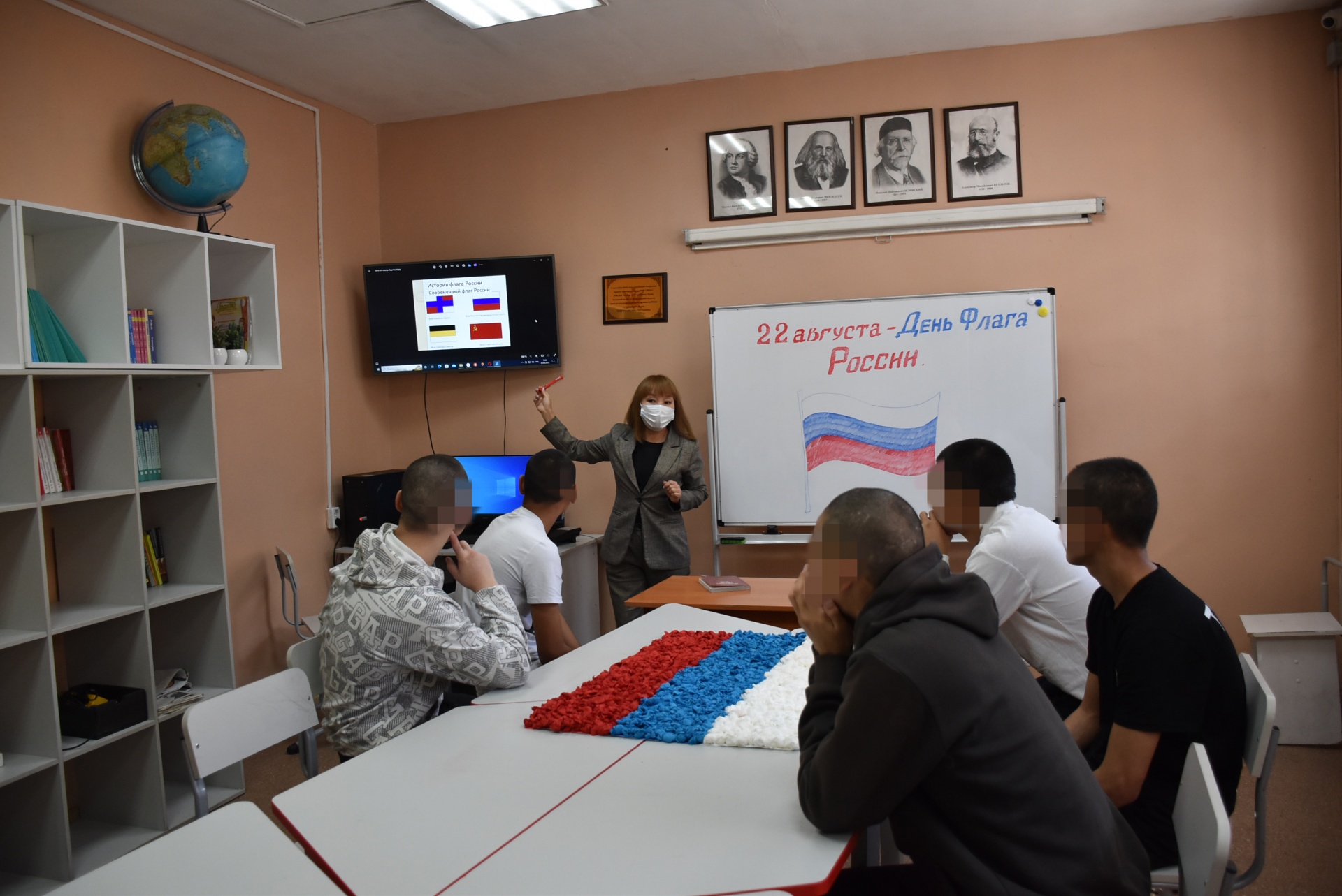 В преддверии Дня государственного флага РФ ребята вместе с сотрудником СИЗО Анастасией Шагдыр изготовили собственный флаг, который установили в учебном классе.