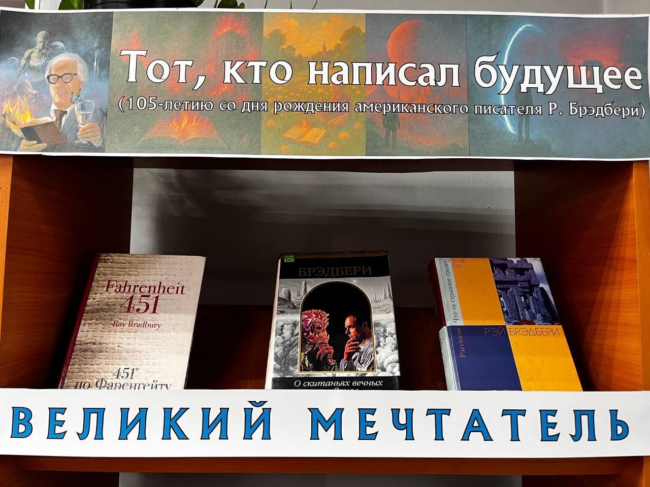 Сегодня мы хотим рассказать вам о замечательной книжной выставке «Тот, кто написал будущее», которая оформлена в универсальном читальном зале Национальной библиотеки им. А. С. Пушкина.