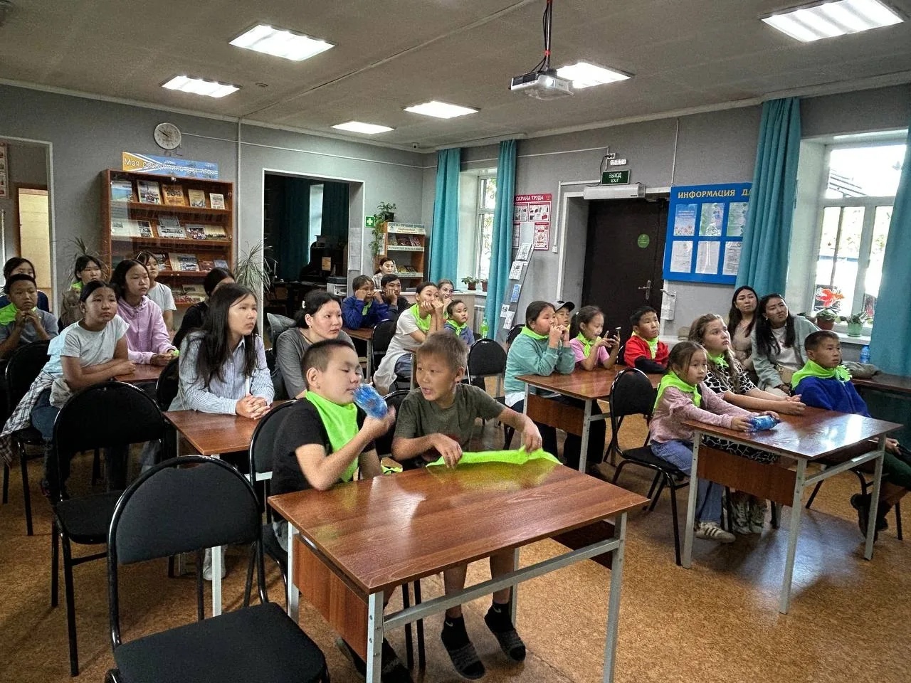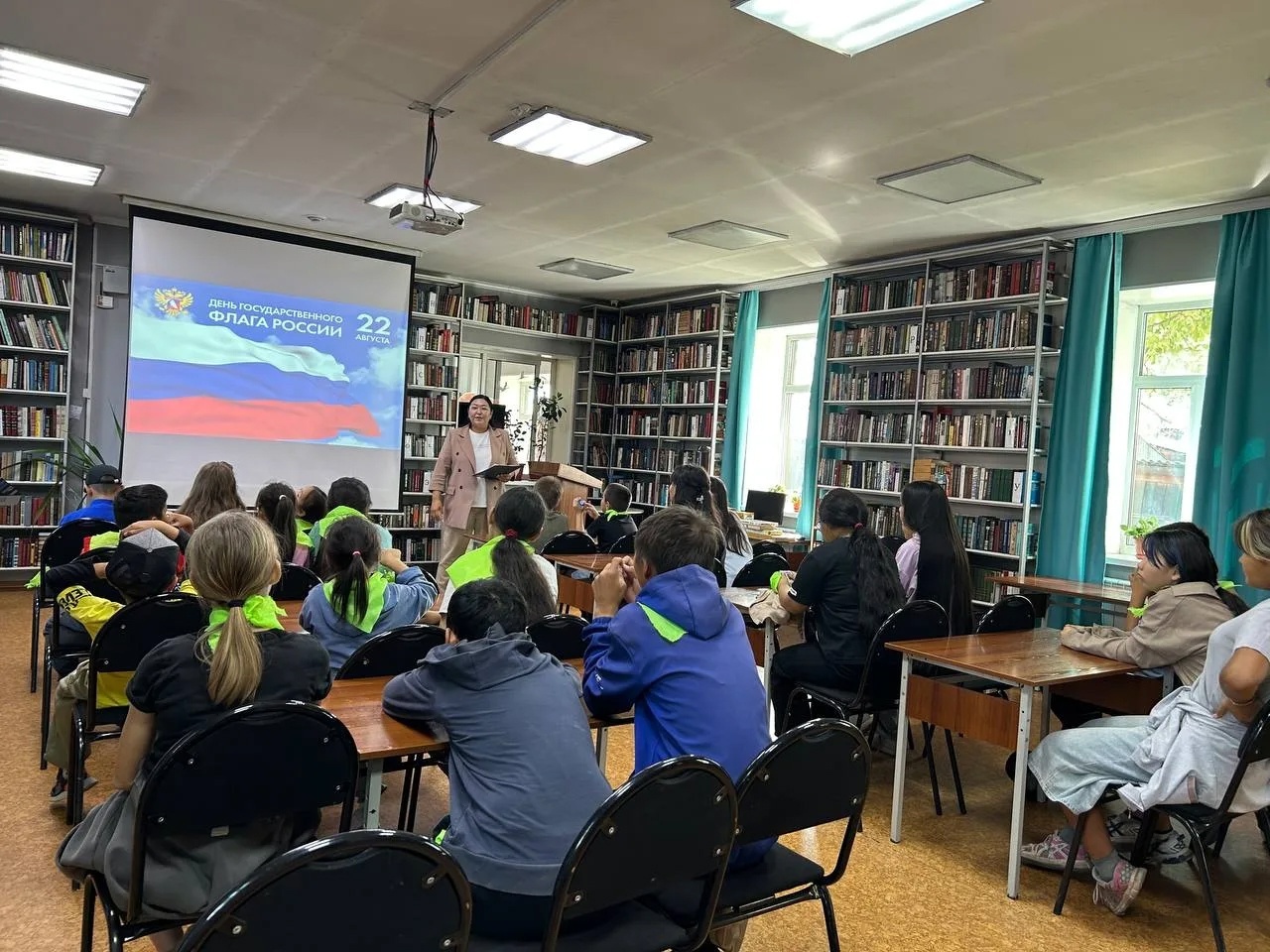 Сотрудники универсального читального зала Национальной библиотеки провели час истории «День Российского флага» для детей пришкольного лагеря «Улыбайка» школы № 4 г. Кызыла.