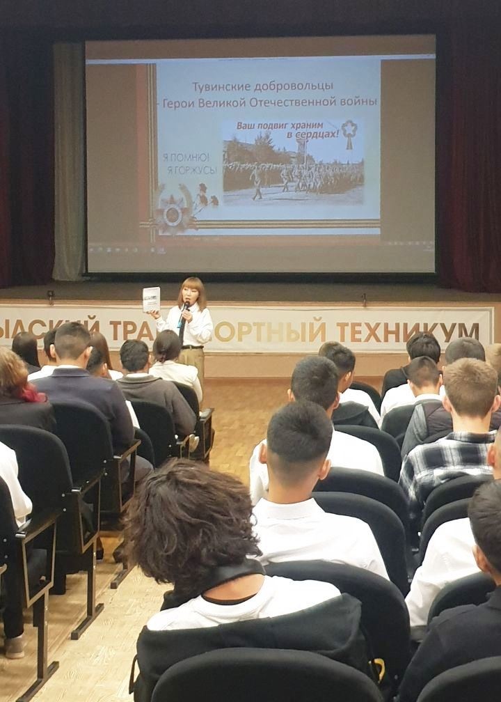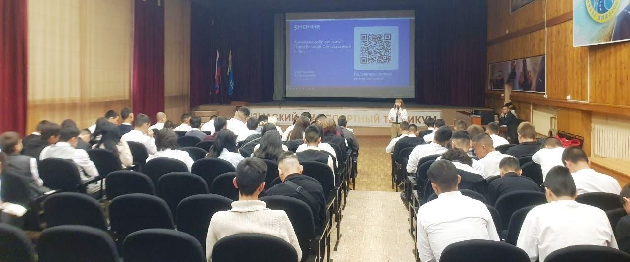 Сегодня в День исторической памяти и чести тувинских добровольцев в Кызылском транспортном техникуме для студентов состоялся патриотический час «Тувинские добровольцы – Герои Великой Отечественной войны».