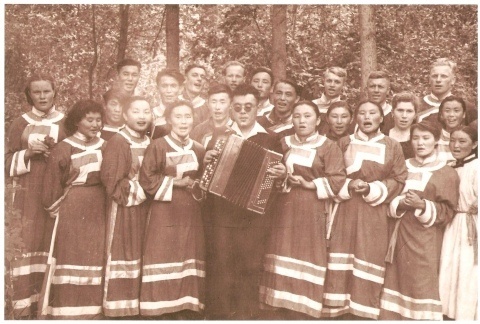 Караа көрбес улустуң школазы ол үеде Тывага турбааны-биле Солаан 12 харлыында Чаа-Хөл школазының 3-кү клазынга өөренип кирген. Ындындан салымныг оол 7 чыл школазын чүгле «5» демдектерге дооскан. Школага өөренип тургаш-ла, көдээ клубта ажылдап турган баянистер Степан Гулев биле Владимир Муравьёвтан ноталарны өөренип, бөдүүн аялгаларны боду тыптар кылдыр өөренип албышаан, орус дылды база шиңгээдип ап турган. Ол чүгле нота-биле ойнаарындан аңгыда, дыңнаан ыры-хөгжүмүн хостуг ойнап, харын-даа клубка хөй улус мурнунга арны чазыгып, танцы-самны үдеп, аялгаларны илдик чокка ойнаар болу берген. Салым-чаяанныг оолдуң хөгжүмче оруу улам алгып, сеткил-чүрээнге өөрүшкүнүң изиг күзели оттуп, ийи хылдыг игилден хөй үннүг баянче хандыкшылы улам-на сундугуп киргени ол.