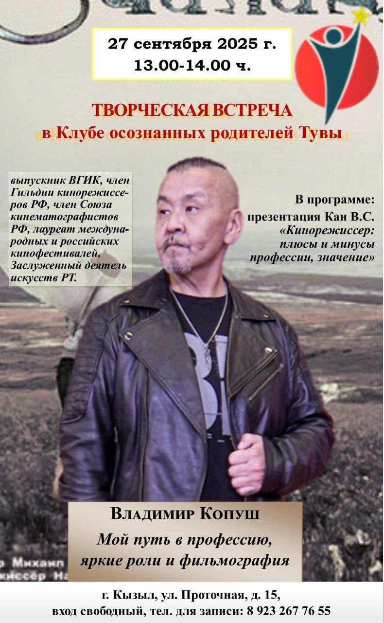 Приглашаем вас на встречу с заслуженным деятелем искусств РТ, кинорежиссёром и актёром Владимиром Надым-ооловичем Копушем!