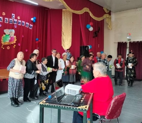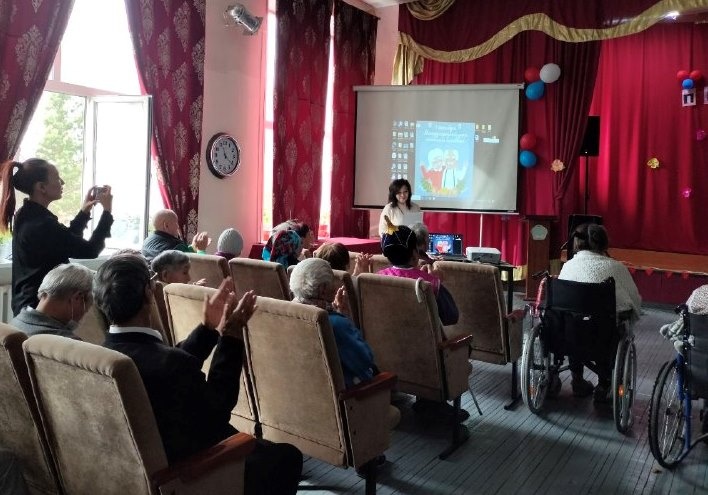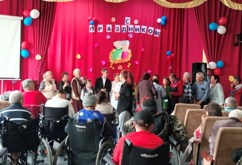 В этот день актовый зал Дома ветеранов был наполнен гостями и самими хозяевами – ветеранами. Гремела музыка, концерт сменялся концертом, аплодисменты не утихали, весь зал радовался задорным и душевным песням, танцам. С концертно-игровой программой на сцене выступили артисты Дома культуры «Енисей», тепло и душевно чествуя ветеранов.Работники Национальной библиотеки провели интересную викторину, задаривая эрудитов призами и сладостями. Пожилые люди были рады такому замечательному празднику, ведь для них нет ничего важнее, чем наше уважение, забота и внимание. Они получили заряд бодрости и оптимизма.