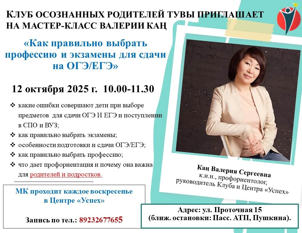 Приглашаем вас на мастер-класс Валерии Кан «Как правильно выбрать профессию и экзамены для сдачи на ОГЭ/ЕГЭ»!