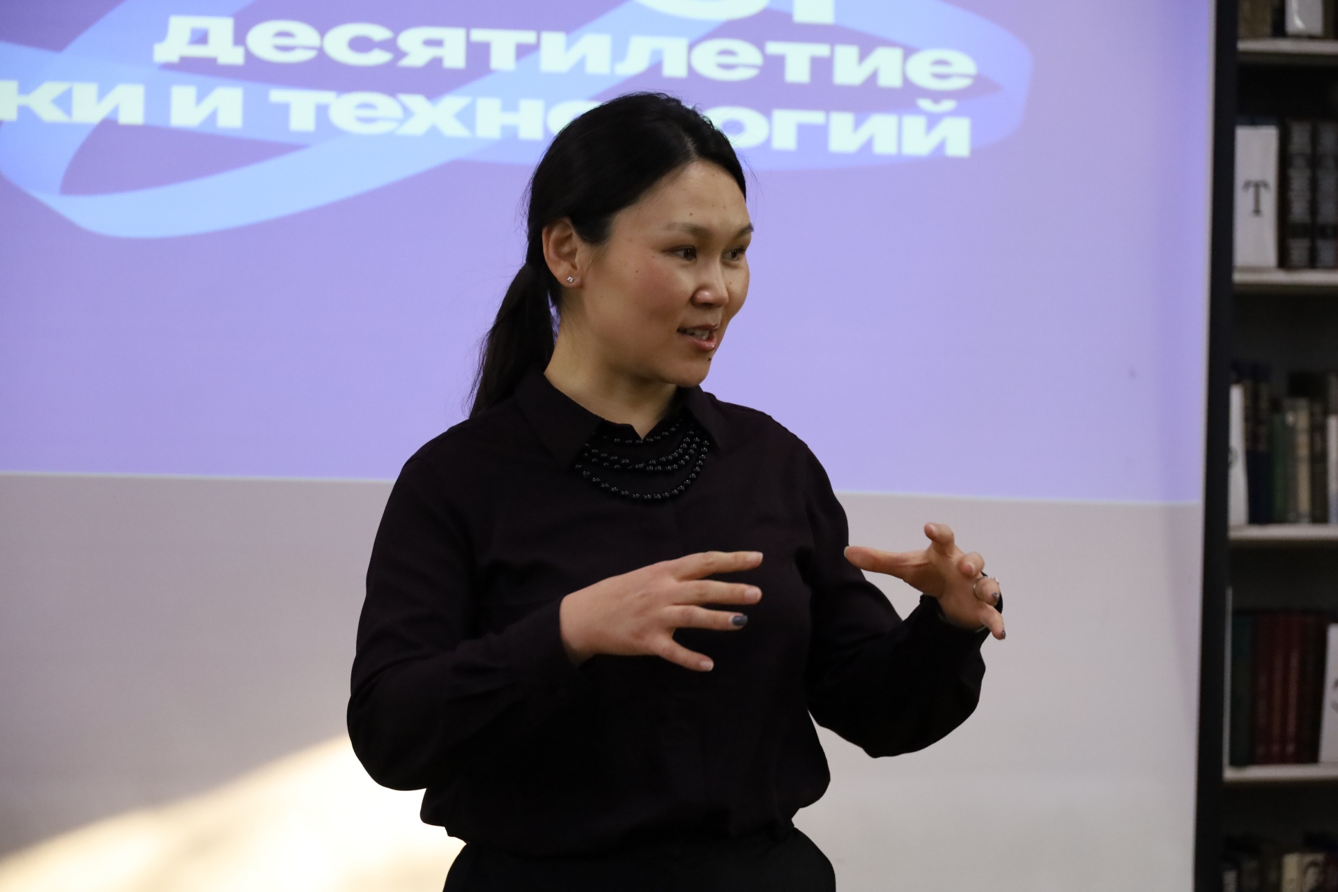 Молодая ученая Солангы Ондар, председатель Союза молодых ученых ТИКОПР СО РАН, рассказала ребятам о своем пути в науку, итогом которого стала защита кандидатской диссертации.
