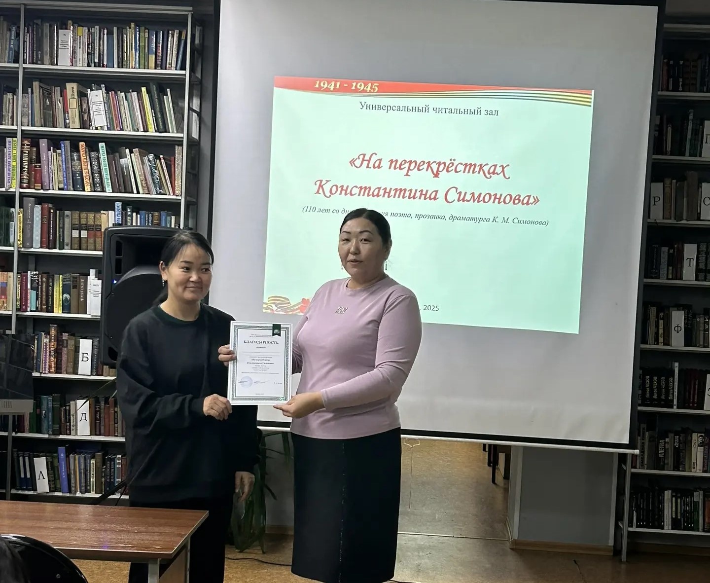 Мероприятие состоялось в универсальном читальном зале. Посвятили его 110-летию со дня рождения русского поэта, прозаика и драматурга Константина Симонова. Гостями стали студенты 2 курса Кызылского техникума экономики и права.