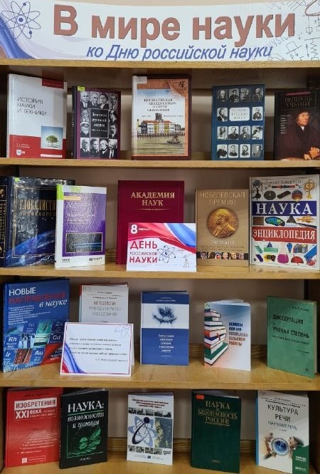 В информационно-библиографическом отделе оформлена книжная выставка «В мире науки». На экспозиции представлена подборка документальных, познавательных и учебных книг об истории науки и ученых России.
