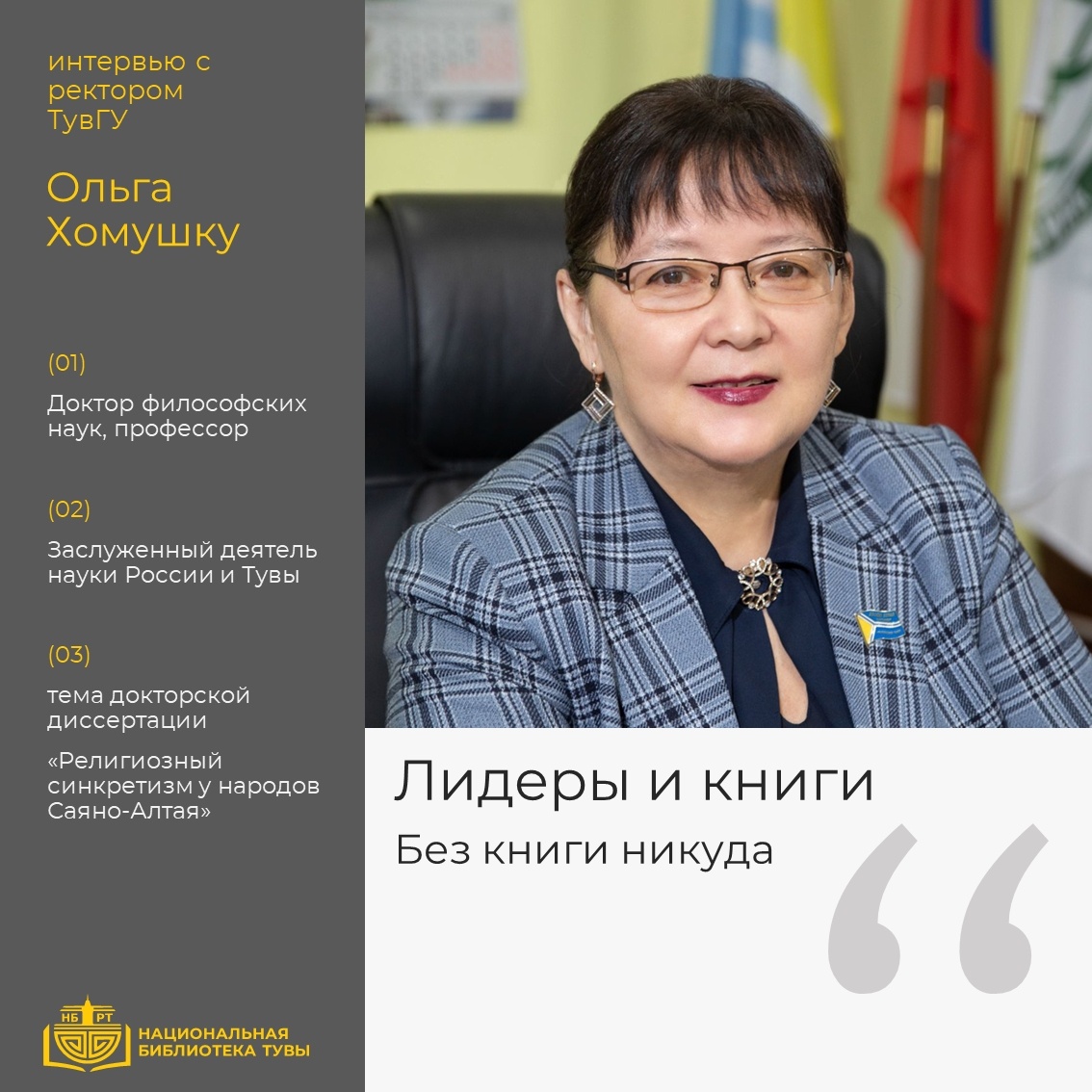 Первым гостем проекта стала ректор ТувГУ Ольга Хомушку. Подробности в карточках
