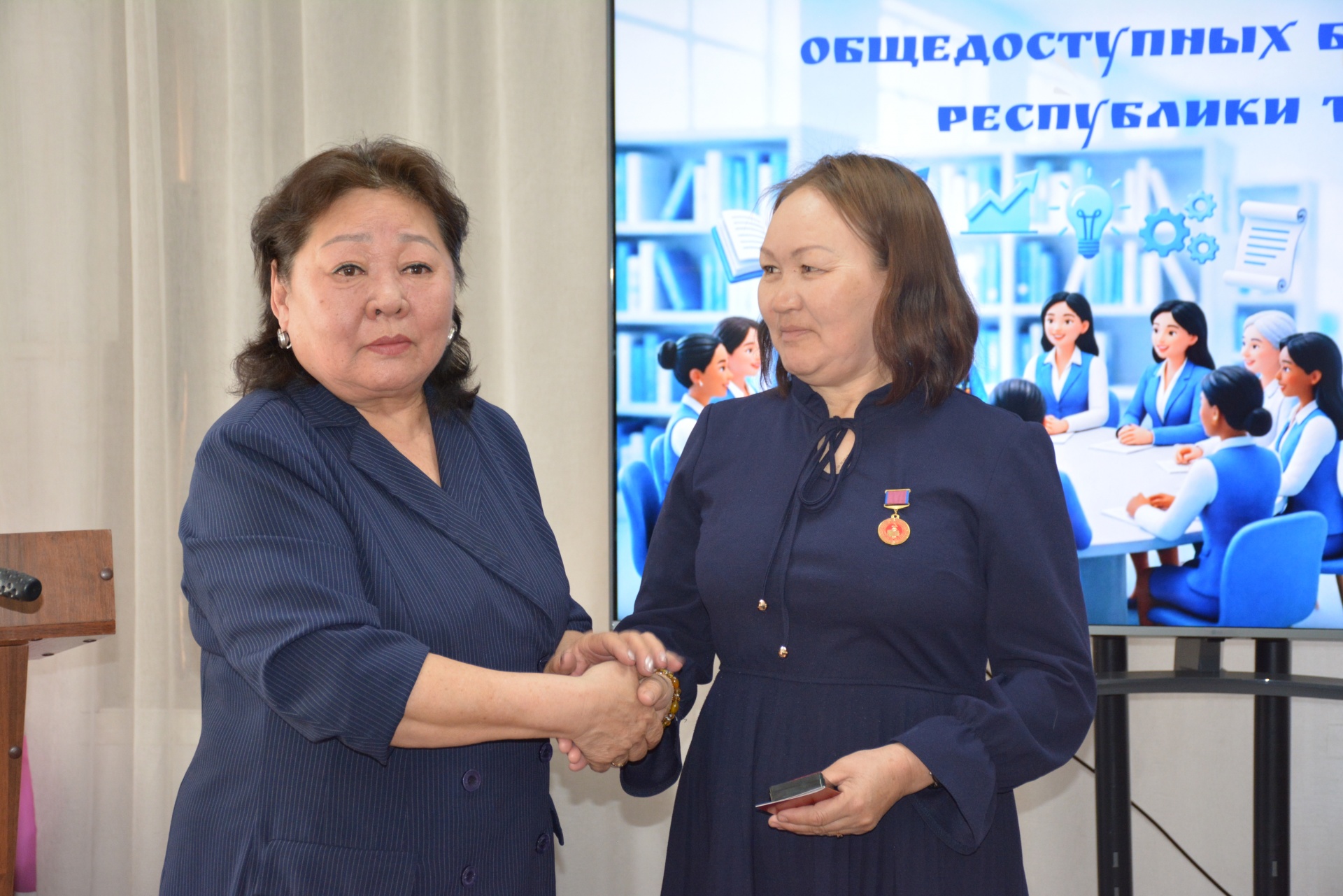Медалью за вклад в библиотечное дело и многолетний добросовестный труд отмечены члены профсоюза:- Айгерим Салчак, директор Бай-Тайгинской централизованной библиотечной системы;