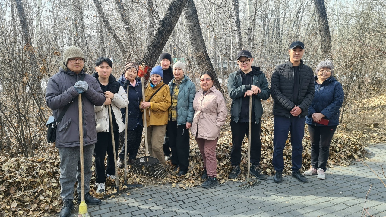 Сегодня сотрудники Национальной библиотеки Тувы организовали субботники как вокруг самого здания, так и в Национальном парке.